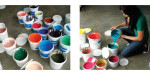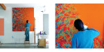 This book documents the making of two of Faruqee’s paintings: “Equator” and “Corbelled Arch,” both 2010. A series of studio photographs catalogues the laborious practice of mixing dozens, sometimes hundreds of subtly shifting colors for each painting. The book tracks Faruqee’s disciplined yet surprisingly freehand painting process, as she repeats a single handmade motif across a large surface on subtly increasing curves.